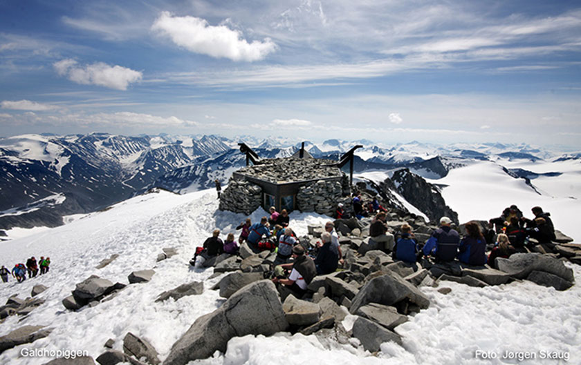 Utsikt fra toppen av Galdhøpiggen i Jotunheimen. Foto: Jørgen Skaug.